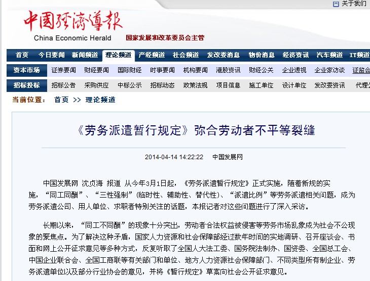 近日,國(guó)家發(fā)改委《中國(guó)經(jīng)濟(jì)導(dǎo)報(bào)》社派出記者對(duì)此進(jìn)行采訪,并對(duì)寧波杰博人力資源有限公司執(zhí)行董事陳龍?jiān)七M(jìn)行了獨(dú)家專訪,由此探解規(guī)定出臺(tái)后,勞務(wù)派遣行業(yè)的發(fā)展趨勢(shì)。