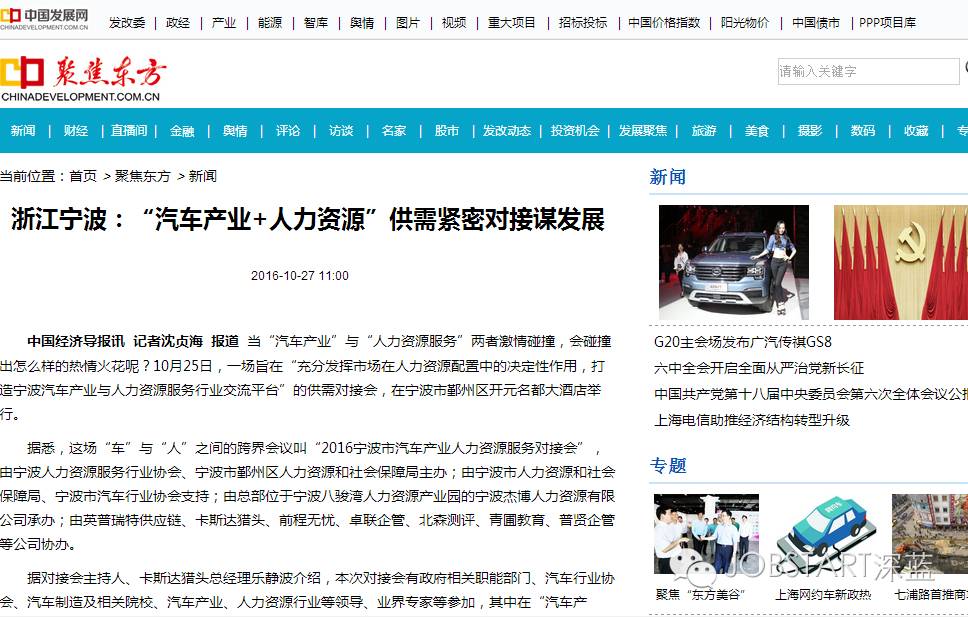 本次對(duì)接會(huì)主辦方負(fù)責(zé)人表示,全國(guó)首個(gè)“中國(guó)制造2025”試點(diǎn)示范城市花落寧波不到兩個(gè)月,為制造強(qiáng)國(guó)探路的戰(zhàn)鼓再次在四明大地隆隆擂響。而汽車(chē)產(chǎn)業(yè)作為寧波的重要產(chǎn)業(yè)之一,更是“中國(guó)制造2025”的重要組成部分之一,汽車(chē)產(chǎn)業(yè)的人力資源服務(wù)就顯得尤為重要,這也是舉行本次對(duì)接會(huì)的意義所在。(來(lái)源:中國(guó)網(wǎng)、中國(guó)發(fā)展網(wǎng)等;供圖:王露、趙寧)